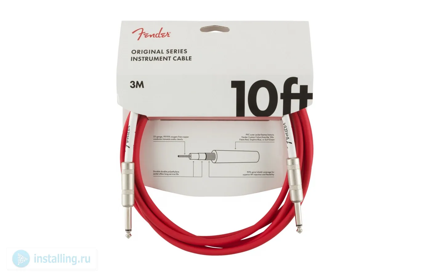 FENDER 10` OR INST CABLE FRD – стильный фирменный аксессуар от знаменитого американского гитарного бренда, инструментальный кабель из линейки Original Series. Данная модель - с двумя прямыми никелированными разъемами 1/4" джек. Кабель со спиральным экранированием (90% бескислородной меди) обеспечивает надежное соединение, стабильную передачу сигнала, он прочный и гибкий, отлично подходит для использования как на сцене, так и в студии. Внешний диаметр – 8 миллиметров. Длина кабеля – 10 футов (3,05 метра). Модель выпускается в нескольких вариантах цветового исполнения. Представленный кабель – с оплеткой из поливинилхлорида эффектного классического фендеровского яркого красного цвета «Fiesta Red».