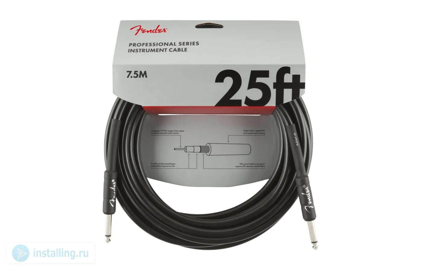 FENDER 25` INST CBL BLK - фирменный аксессуар от знаменитого американского гитарного бренда, инструментальный кабель из линейки Professional Series. Данная модель - с двумя прямыми разъемами 1/4" джек. Кабель производится из высококачественных материалов, со спиральным экранированием (95% бескислородной меди), он обеспечивает максимально чистый звук. Кабель прочный и гибкий, отлично подходит для использования как на сцене, так и в студии. Внешний диаметр - 8 миллиметров. Разъемы - никелированные. Представленный кабель - с оплеткой из поливинилхлорида, полностью черного цвета. Модель выпускается в нескольких вариантах длины. Длина данного кабеля - 25 футов (7 м 62 см).