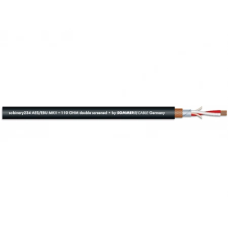 Серии BINARY 234 AES/EBU MKII, PUR. Этот прочный кабель имеет две жилы сечением 0.34 мм² (AWG 22) в общем экране. Предназначен для передачи сигналов формата AES/EBU и DMX. Диаметр кабеля 6,2 мм. Изоляция жил из ПЭ (PE).