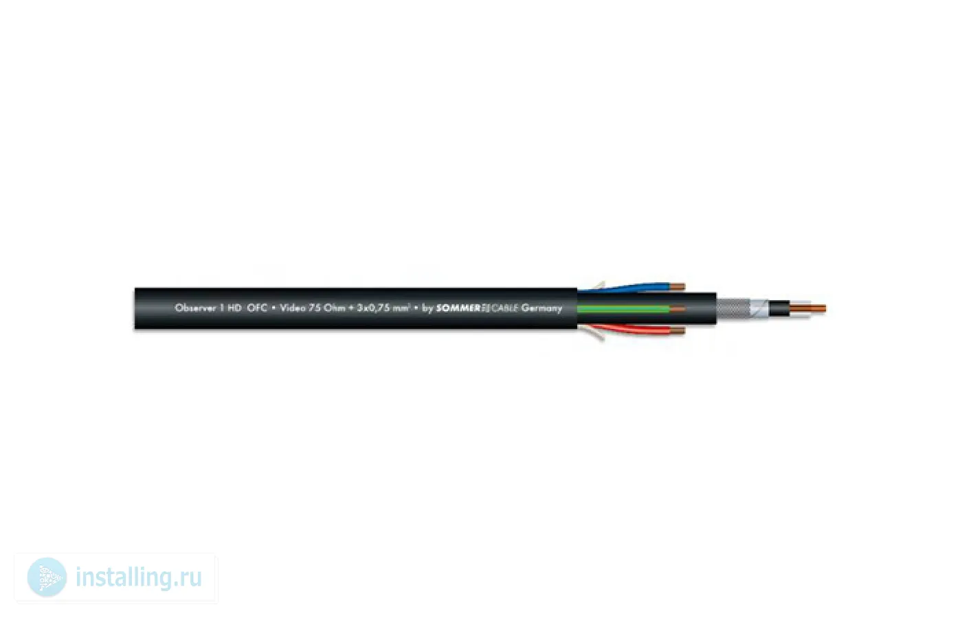 Для SDI-сигналов серии SC-OBSERVER 1 HD, состоящий из коаксиального видеокабеля с волновым сопротивлением 75 Ом и жил питания 3х0,75 кв.мм, оболочка S-PVC наружным диаметром 9,0 мм. Гибкий, холодостойкий.