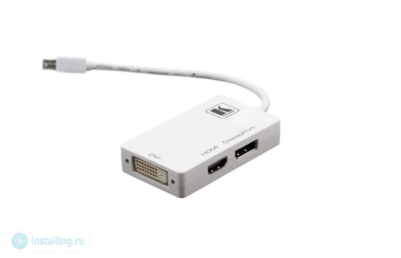 ADC-MDP/M2 – компактное устройство-переходник Mini DisplayPort 1.1a (вилка) на DVI, HDMI или DisplayPort (розетка). Поддерживает разрешения для DVI, HDMI до 1080p (1920x1200), для DP – до 2560x1600. Длина кабеля 15 см.