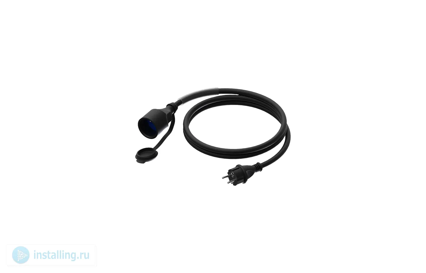 CAB465/1.5-F – силовой удлинитель 1,5 м, розетка с крышкой, 3х2,5 мм?, Франция. Включает кабельную розетку типа E, силовой трехжильный кабель H07RN-F3G2.5 с неопреновой оболочкой диаметром 11 мм и длиной 1,5 м, прямую вилку типа E (Франция). Розетка типа E (Франция) имеет два круглых контакта диаметром 4,8 мм, расположенных на расстоянии 19 мм друг от друга (правый контакт нейтральный, левый – фаза) и заземленный контакт, выступающий из верхней части розетки. Этот тип используется во Франции, в Бельгии, Польше, Чешской Республике, Словакии и Дании. Часто этот тип называется Schuko/Шуко, от немецкого schutzkontakt, что означает «защищенный», или «заземленный» контакт. Несмотря на то, что стандарт предусматривает использование контактов диаметром 4,8 мм, отечественные вилки (по ГОСТ 739), соответствующие евророзетке (Europlug), с контактами диаметром 4 мм и расстоянием 19 мм между ними легко подходят к французским розеткам. Жилы кабеля многопроволочные (48x0,254 мм) витые в ПВХ-оболочке, очень гибкие, имеют низкое сопротивление (0,66 Ом/100 м) и расчитаны на ток до 20 А. Оболочка кабеля из искусственной резины – неопрена – устойчива к УФ, кислотам, нефтепродуктам и не содержит галогены. Износостойкая прочная и очень гибкая оболочка, поддерживающая диапазон температур от -40° до 90°, позволяет использовать удлинитель в любых климатических условиях как внутри, так и вне помещений. Кабель дополнительно оснащен крышкой для розетки и прозрачной пластиковой трубкой для защиты кабеля от перегибов и изломов. Цвет – черный.