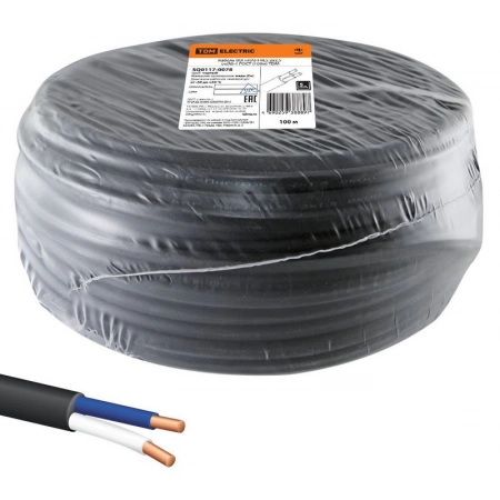 Оболочка ПВХ-пластикат; 2 медные однопроволочные жилы сечением 1,5 мм?,O-внеш. 8,5 мм, U-ном. 0,66 кВ; t-монт. не ниже -15°С, t-раб. -50...+50°С; бухта 100м, масса 11.46 кг