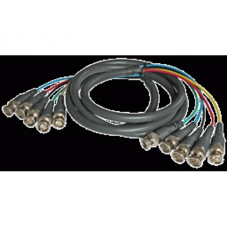 Кабель Kramer 5 BNC состоит из 5 75-омных мини-коаксиальных кабелей высокого разрешения сечением проводника 26 AWG, разделанных на 75-омные байонетные разъёмы (типа BNC). Кабель отлично подходит для раздельной передачи красного, синего, зелёного сигналов, кадровой и строчной синхронизации (сигналов VGA, RGBHV).