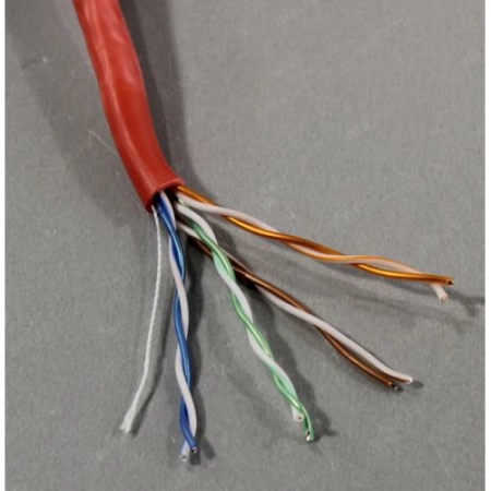 Кабель витая пара, неэкранированная U/UTP, категория 5e, 4 пары 24 AWG0,50 мм, для внутренней прокладки, одножильный solid , Омедненный алюминий CCA , PVC, -20°C – +75°C, красный 305 м .