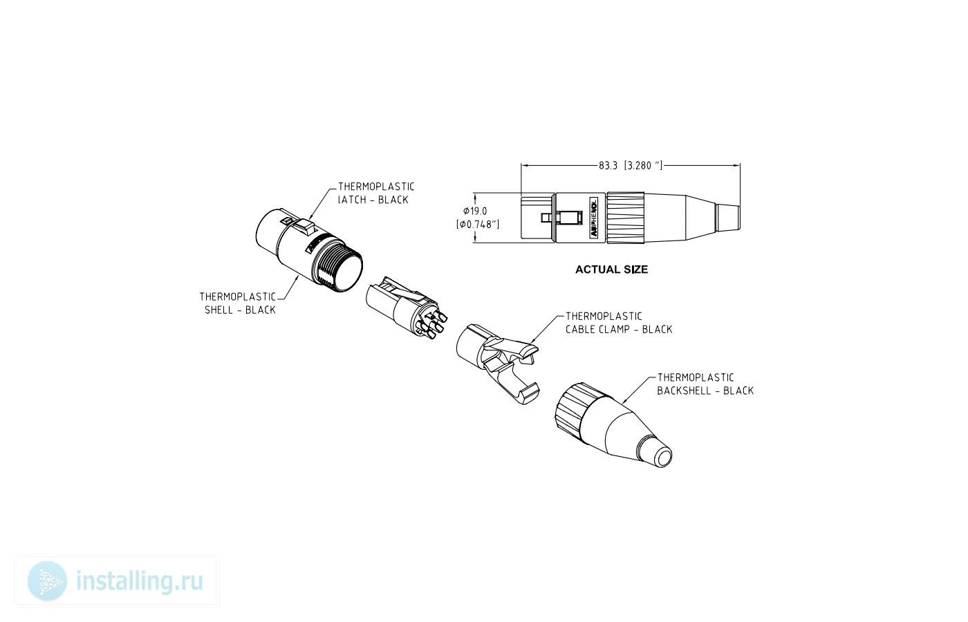 3 контакта., штампов.конт., корпус из термопластика