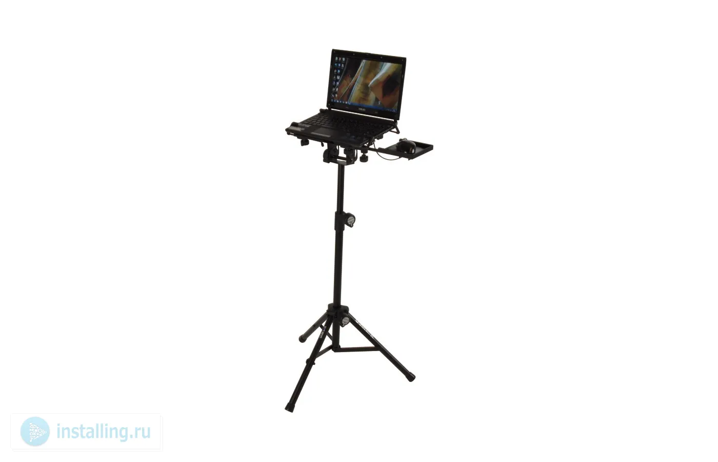 Для ноутбука на треноге с площадкой для мышки, высота от 75 до 129 см, платформа для ноутбука 25х25 см, максимальное посадочное место для ноутбука 46x46 см, платформа для мышки 13.5x13.5 см