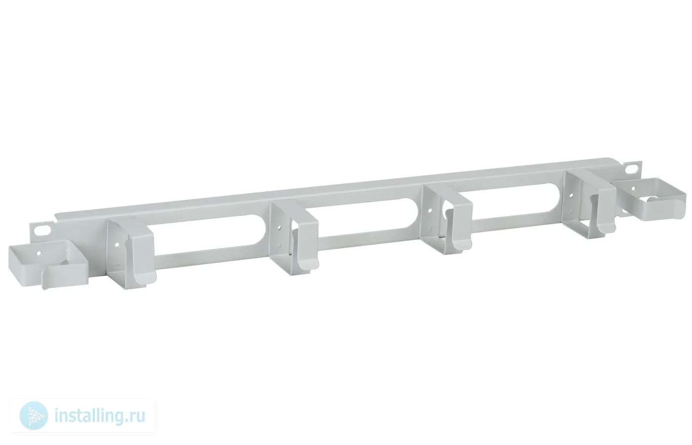 Кабельный органайзер горизонтальный металл 19, 1U, 2 боковых горизонтальных и 4 вертикальных кольца,483х50х44,5 мм, порошковая окраска с фосфатированием, цвет серый.