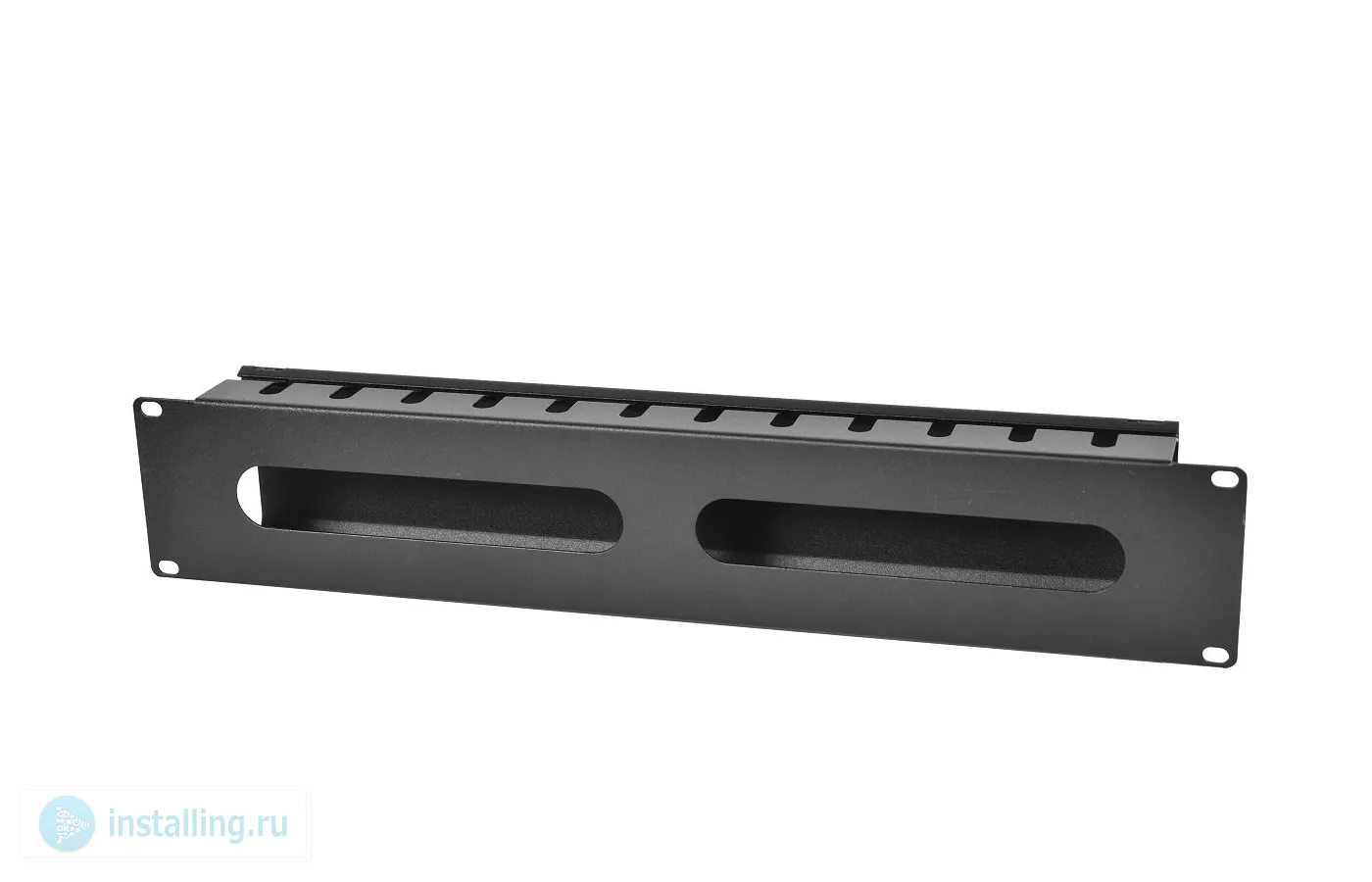 Горизонтальный органайзер предназначен для размещения кабеля. Крышка легко защелкивается на корпусе и надежно держится, позволяя скрыть кабели, а так же удерживать их внутри, создавая защиту от внешнего воздействия.