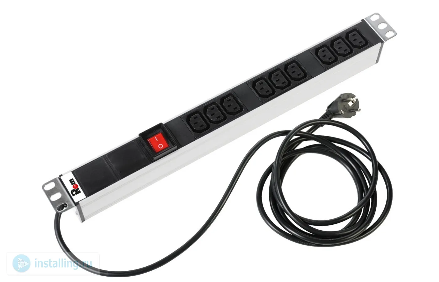 Блок розеток с выключателем, 9 IEC 60320 C13, 16A, алюминий, 19, шнур 3 м.