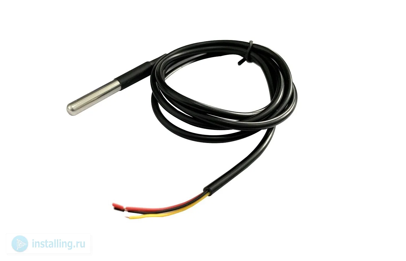 Цифровой датчик температуры в герметичном корпусе, предназначен для работы с контроллером Rem-MC по 1-Wire; 3-х проводный, U-пит.5В; IP68, t-раб.-55...+125°С. Провод 2 метра.