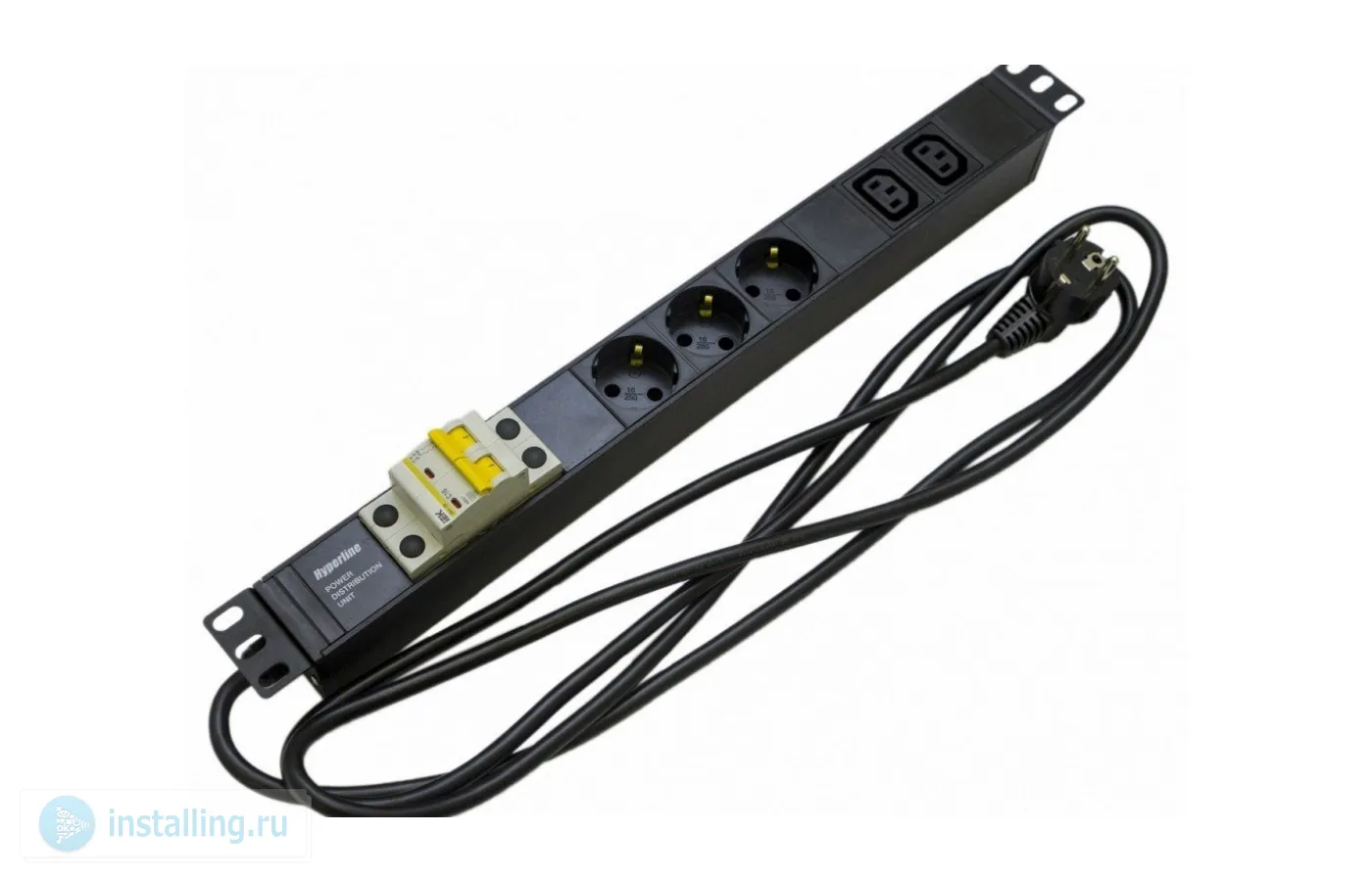 Горизонтальный, с автоматическим выключателем, 3 x Schuko + 2 x IEC 320 C 13, 16 A, 250 В, кабель питания 3 х 1.5мм 2, длина 2.5 м, с вилкой Schuko, 482.6 x 44.4 x 44.4 мм Д х Ш хВ