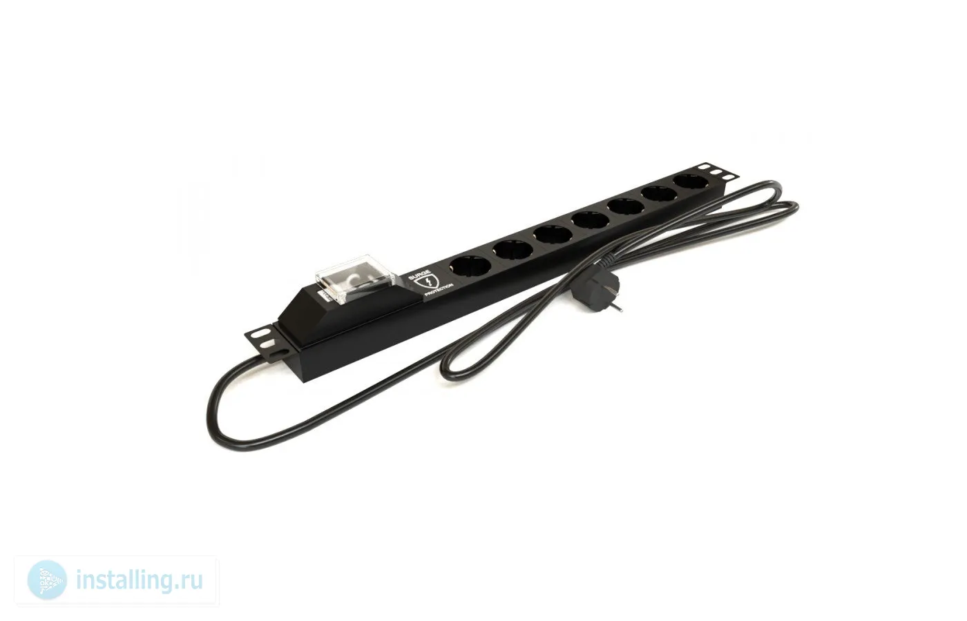Горизонтальный, 7 розеток Schuko, автомат. выключатель, защита от перенапряжения, кабель питания 2.5м (3х1.5мм2) с вилкой Schuko 16A, 250В, 482.6x44.4x44.4мм (ШхГхВ), корпус алюминий, черный