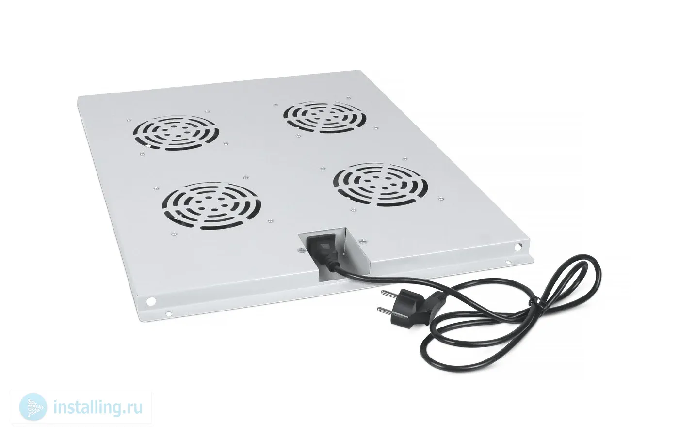 Модуль вентиляторный потолочный 19 серый, 4 вентилятора, 70Вт, AC 220 В, вход питания IEC-60320 C14, шнур в комплекте 1.5м, крепеж в комплекте, 40х418х549 мм. Для установки в напольные шкафы серии SH-05C, ND-05C глубиной 800мм.