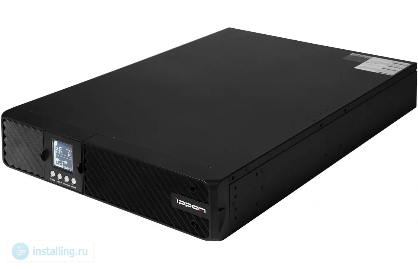 Line-interactive; LCD дисплей, чистый синусоидальный сигнал; нагрузка 3000 ВА/2700 Вт; U-вх.165-290 В; 6 АКБ 12 В, 9 Ач; защита от КЗ и перегрузки; вход 1xIEC C20, выход 8xIEC 60320 C13, слот для SNMP карты, USB HID type B, RS-232, EPO; GPS40; время работы в автономном режиме при 30/50/70/100% нагрузке - 18/9/4/2 мин; возможность подключения до 2х батарейных блоков EBM Pacific 3000; 0…+40°C; 438х88х610 мм.