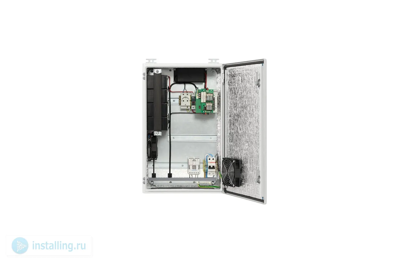 Комплект настенного крепления, монтажную панель, с DIN-рейку, проходные клеммы, двухполюсный автомат, шину заземления, вентилятор с термостатом, нагреватель, согласованный с заказчиком комплект кабельных вводов и систему бесперебойного питания DC 48В, 500ВA/АС 220В, 300ВА, с крепежом для АКБ 7Aч x4,IP66,-40 ~ +50°C, Защита батареи от глубокого разряда и КЗ,380х600х210 мм. Поставляются без установленных АКБ.