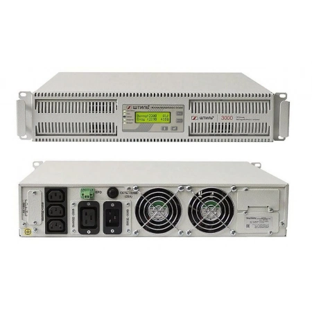 220 В в стойку, on-line с двойным преобразованием , чистая синусоида, 3000 ВA 2700 Вт ; под внешние аккумуляторы, U-акб.96 В, I-заряд.2 А; ЖК-дисплей; выходные разъёмы - IEC-320-C13 3 шт. , IEC-320-C19 1 шт. ; холодный старт, совместим с генератором; высота 2U; IP20, t-раб.+5...+40°С, 88х466х440 мм
