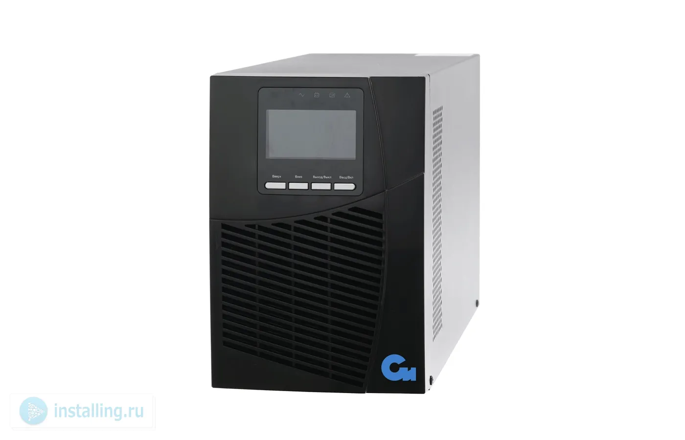 On-line 1000 ВА; U-вх.100…300 В; Нагрузка 1000 Вт; Чистая синусоида; 3 АКБ 12 В; Защита от всплесков ; USB; RS-232; слот для мини SNMP; Розетка IEC C13х4; Порт аварийного отключения EPO; 0...+40°C; 209х144х399 мм. ЖК дисплей. Время автономной работы (полная нагрузка) 5 мин.