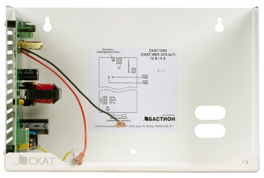 U-вх.150…250 В, U-вых.9.5…14 В, I-ном. 4 А, I-макс. 5 А (до 5 сек), под АКБ 12 В 17 А·ч или два АКБ 12 В 7 А·ч; защита от КЗ, защита АКБ от глубокого разряда; световая индикация "Сеть", Выход", "АКБ"; выход "Неисправность"; IP20, t-раб. -30…+40°С, 285х90х185 мм