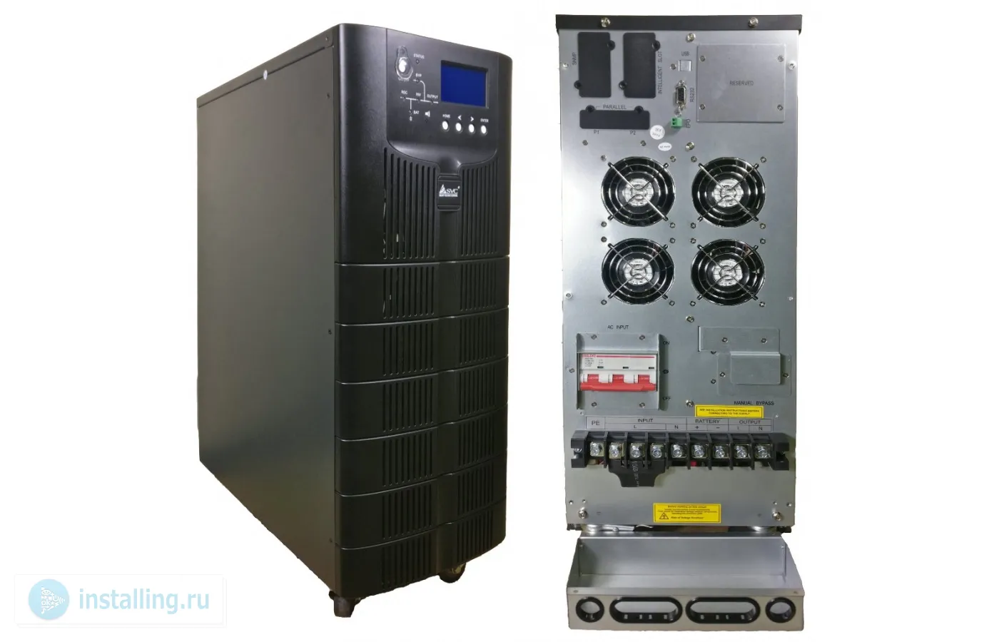 On-Line, чистая синусоида; P-нагр.20кВА/18кВт, U-вх.220В, AVR:176...288В, U-вых.220/230/240В±1, Внешние АКБ/Блоки не входят в комплект , U-шина 192В, I-зар.5А; выходные разъемы Клеммная колодка, LCD-дисплей, SNMP-слот, RS-232. Напольный