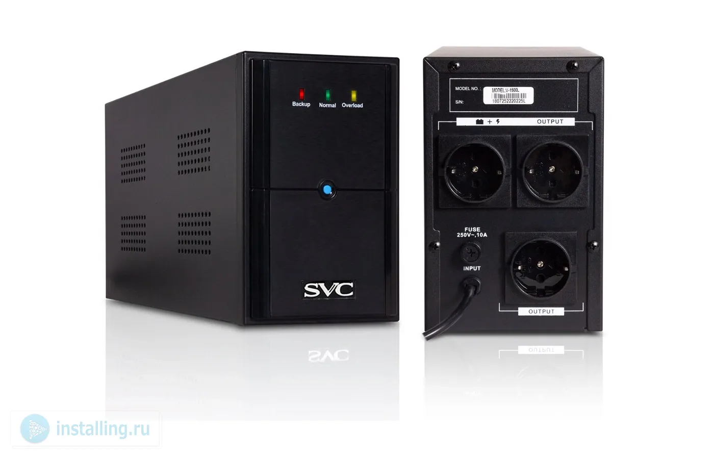 Line-Interactive 1500 ВА; АС 145-290 В; Нагрузка 900 Вт; Модифицированный синус; 2 АКБ 12 В, 9 Ач; Защита от перегрузки и КЗ; Розетка 3хSchuko; 0 ...+40°С; 192 х 124 x 340 мм.