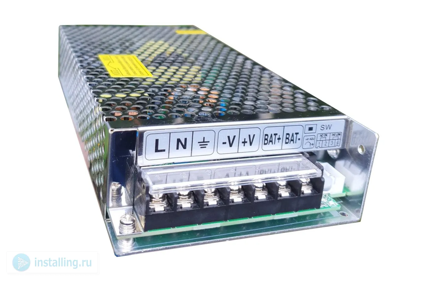 С креплением на DIN рейку; U-вх.90…130/180…264 В (переключаемое), U-вых.48…56 В (регулируемое), I-нагр.3 А; под четыре аккумулятора 12 В 7... 17 А·ч; защита от КЗ, перегрузки, перенапряжения и защита от глубокого разряда АКБ; t-раб.-20…+60°С; 199x98x38 мм.