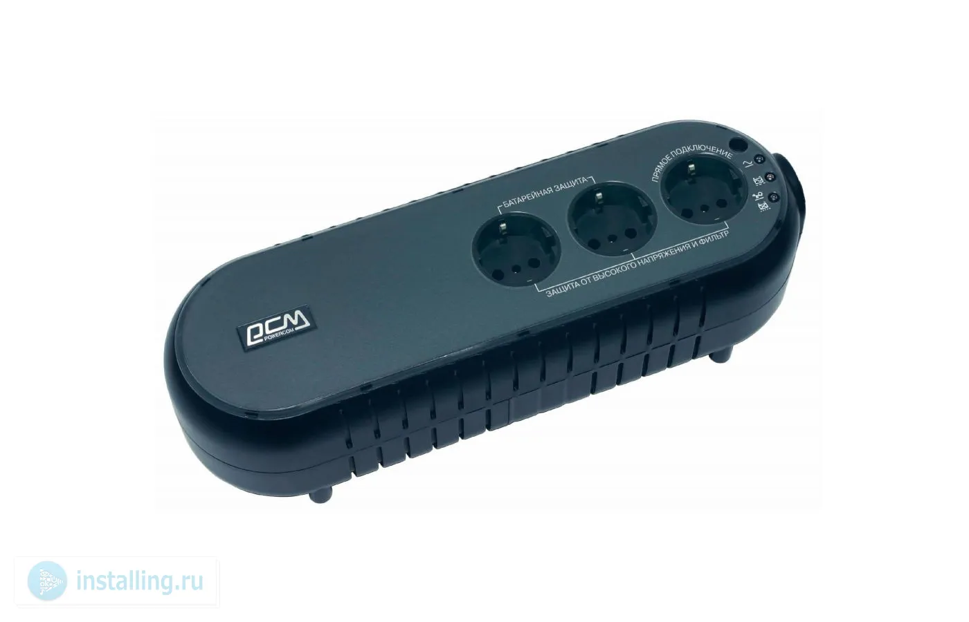 Off-line 300 ВА; АС 220В; Нагрузка 165 Вт; Модифицированная синусоида; 1 АКБ 6В, 4.5Ач; Защита от перегрузки и КЗ; РозеткаSchuko x 3шт; 0 ...+40°С; 100x315x68 мм. Время автономной работы от батарей при нагрузке 100 Вт 4 мин.