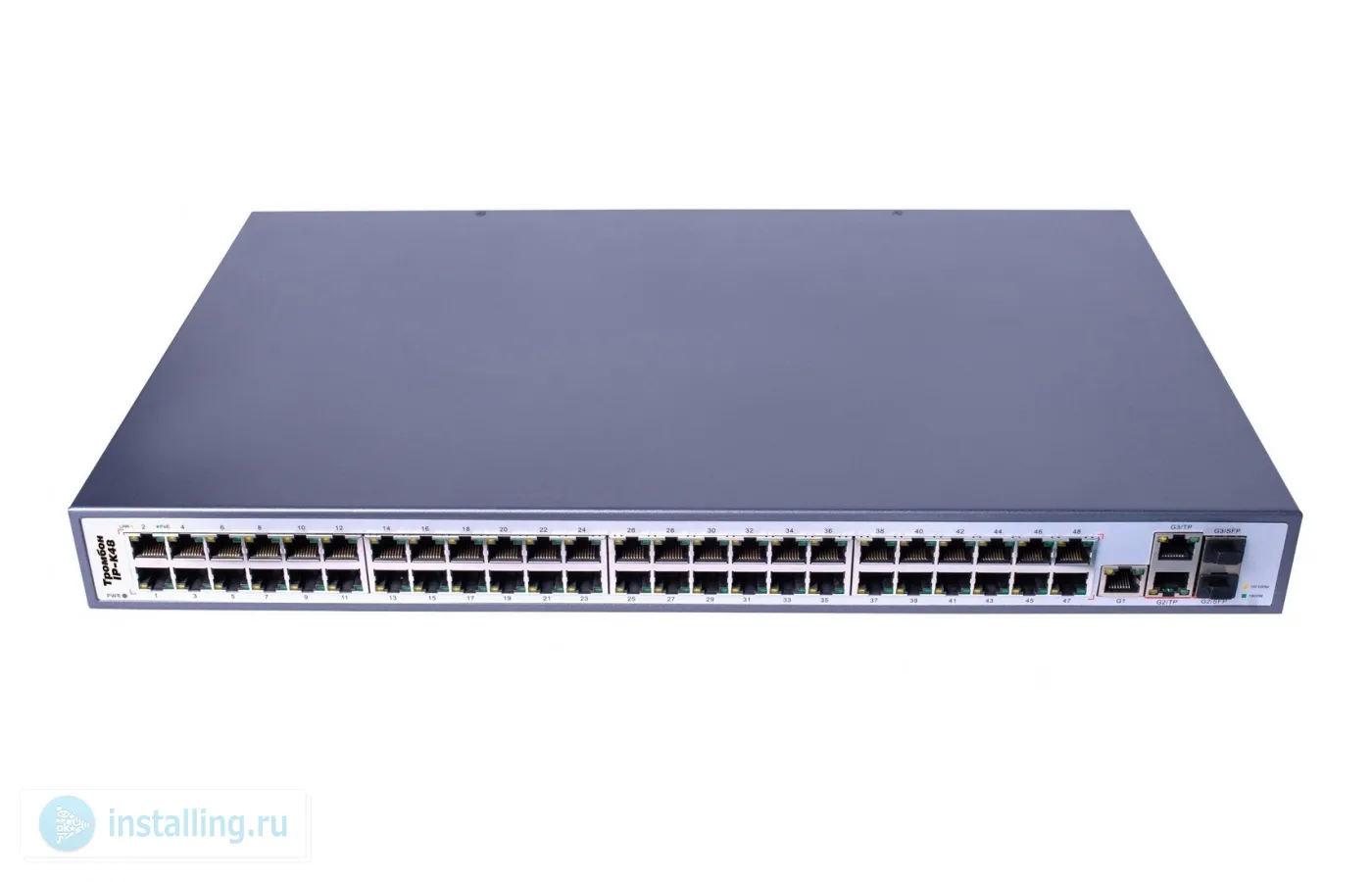48 портов POEIEEE802.3af/at , неуправляемый. До 30 Вт на порт, одним LAN-портом без РоЕ и двумя LAN-портами без РоЕ, совмещенными с с двумя оптическими SFP-портами. Суммарное PoE питание до 600 Вт. Исполнение в металлическом корпусе, IP30, комплект крепления в 19 стойку или шкаф. Питание от сети 220 В. Прибор предназначен для использования в системе Тромбон IP в качестве сетевого PoE коммутатора.