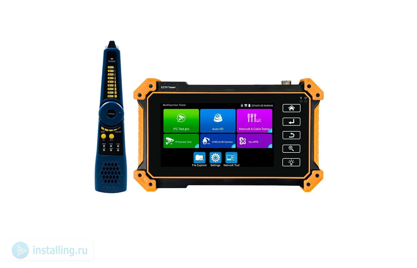 AHD/CVI/TVI/CVBS и IP-видеосистем. Базовая модель + детектор кабельной трассы. Возможности: поддержка ONVIF; 8Mp TVI, 8Mp CVI, 8Mp AHD; доступ в Web-интерфейс камеры с помощью встроенного браузера; Android - Приложения для управления камерами c возможностью самостоятельной установки/удаления ПО; Audio/Video плееры; запись аудио/Video потоков, скриншотов на карту памяти; кабельный рефлектометр с интерфейсом RJ-45; измерение уровней видеосигнала, генератор тестовых таблиц; проверка UTP-кабеля; тестирование IP-сетей; RTSP; измерение РоЕ-напряжения; генератор CVBS; PTZ-управление; мониторинг интерфейса RS485; источник питания PoE 48В, 24Вт ; источник питания DC12В/3А. Разъемы: 2хRJ45; HDMI и VGA входы; BNC; клеммыRS485 ; jack 3.5мм вход, слот MicroSD. Характеристики: разрешение экрана - 5 1920x1080; Wi-FI IEEE 802.11n 150mbit/s; батарея Li-Pol 7.4В 3350mA/ч;183x36.5x110мм;-10°С до 50°С.