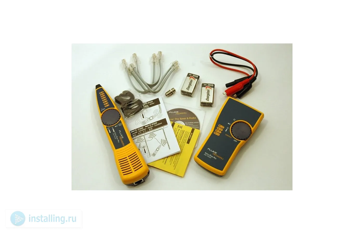Fluke Networks IntelliTone Pro 200 LAN – тестовый набор состоит из генератора и щупа (антенны). Работает с витой парой, телефонным и коаксиальным кабелем. Служит для поиска нужного кабеля из пучка, отбора жил, поиска и трассировки проводников внутри стен, а также для определения повреждений. Прибор способен генерировать не только аналоговый но и цифровой сигнал. Это дает возможность работать на активных линиях, не отключая их от коммутатора. Цифровой сигнал абсолютно не чувствителен ко всякого рода электромагнитным помехам, что дает возможность искать или трассировать нужный кабель даже в условиях где аналоговый сигнал будет полностью заглушен наводками.