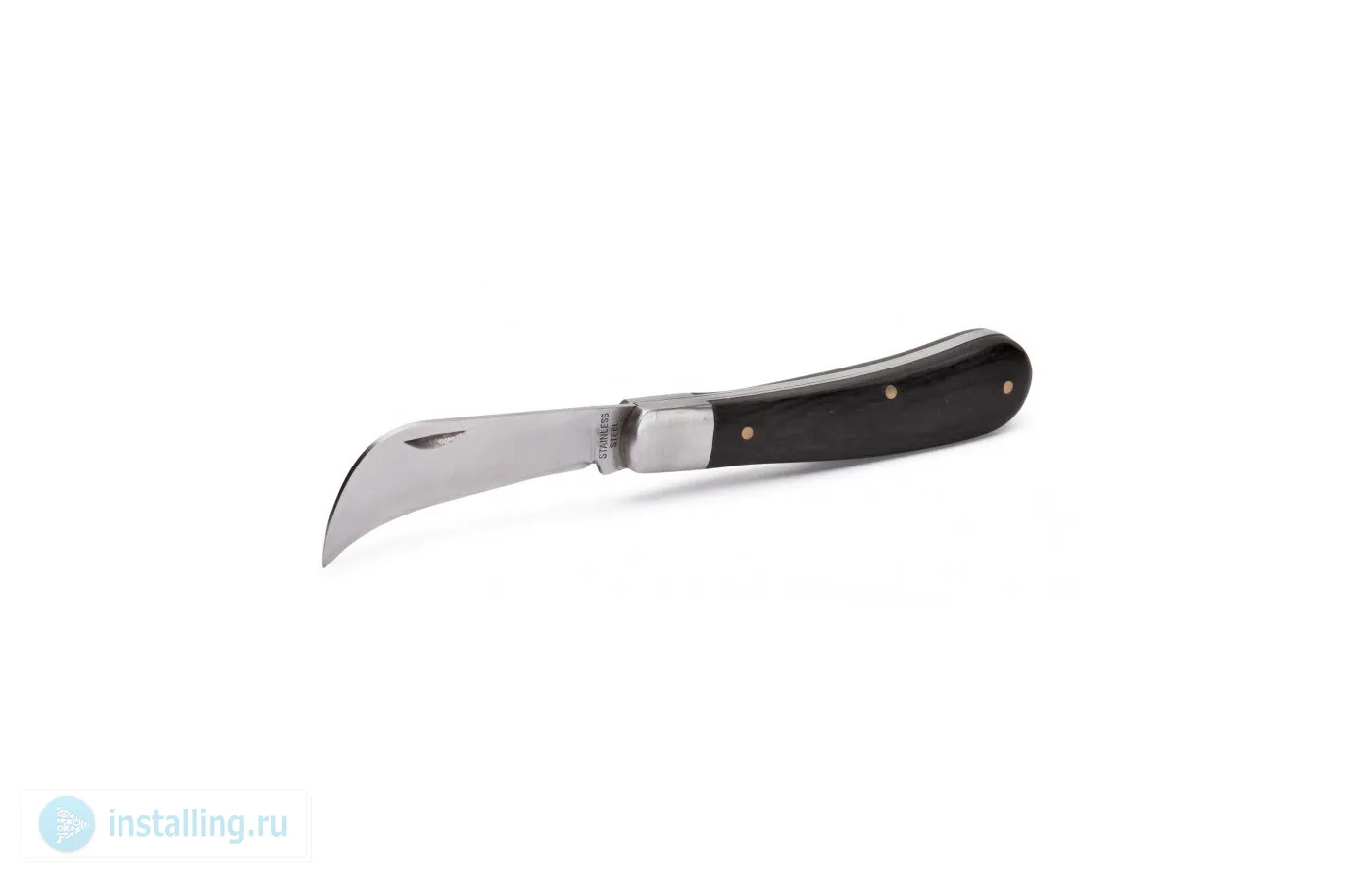 Нож для снятия изоляции монтерский малый складной с изогнутым лезвием, твердость лезвия HRC 51...55, длина 98/165 мм, вес 76 г.