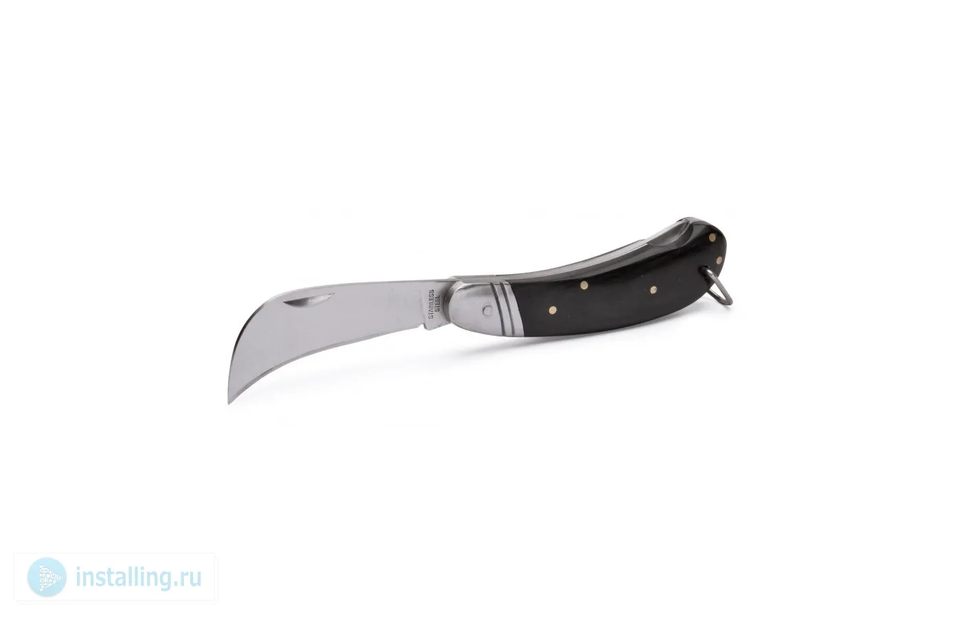 Нож для снятия изоляции монтерский большой складной с изогнутым лезвием и фиксатором, твердость лезвия HRC 51...55, длина 107/185 мм, вес 124 г.