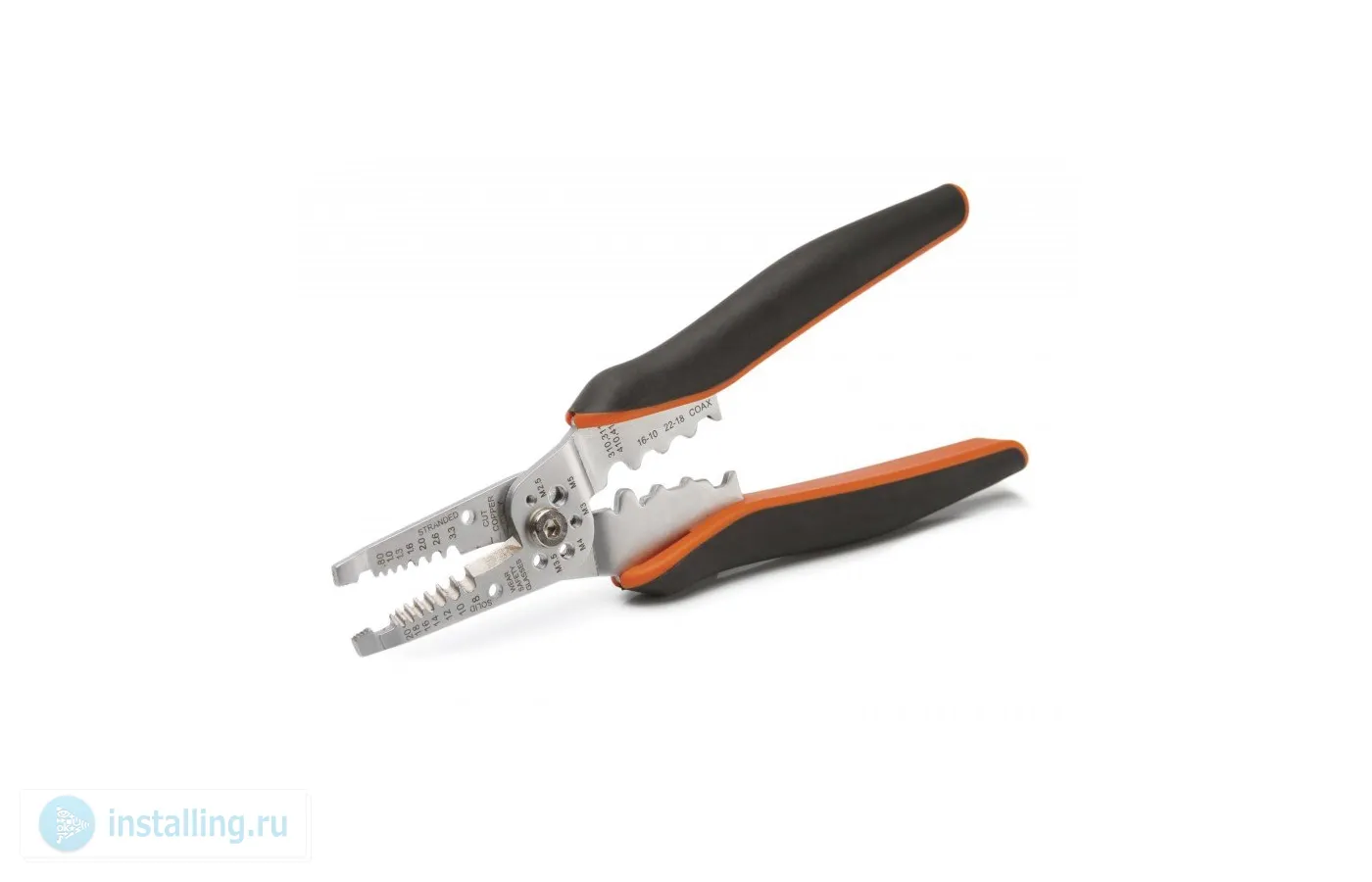 Многофункциональный ручной стриппер из нержавеющей стали, снятие изоляции и резка проводов 0.5…6 мм?, резка винтов с резьбой М2.5, М3, М3.5, М4, М5, опрессовка наконечников сечением 0.5...6 мм?, пассатижи, отверстия для формирования петель, длина 210 мм, вес 160 г.