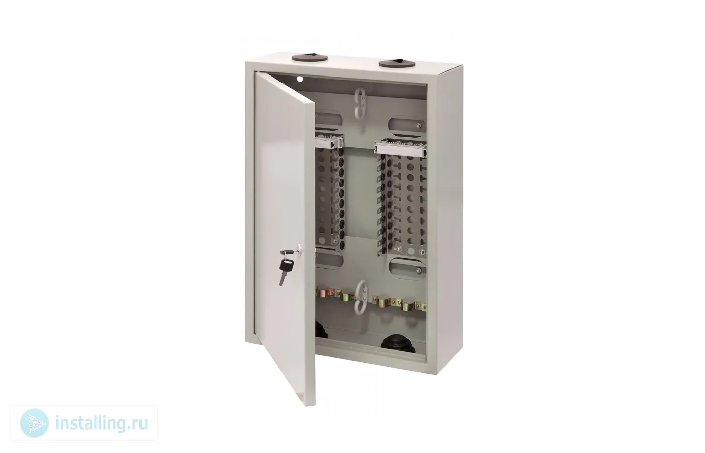 Распределительный, на 20 плинтов до 200-т пар , с кронштейнами, металлический, с замком, 605х400х150 мм, бежевый.