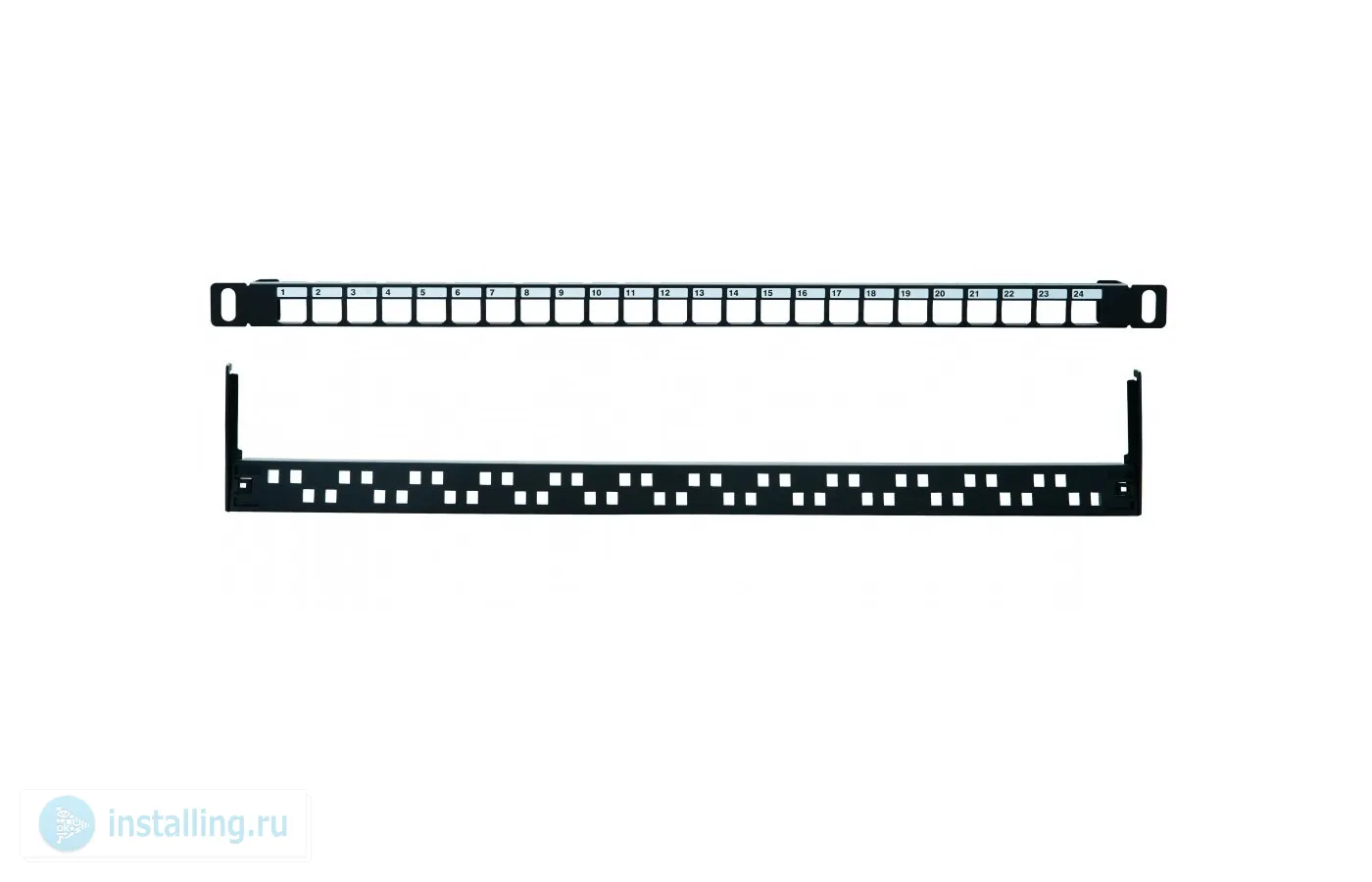 19” наборная, UTP, 0,5U, 24 порта Keystone, цвет черный.
