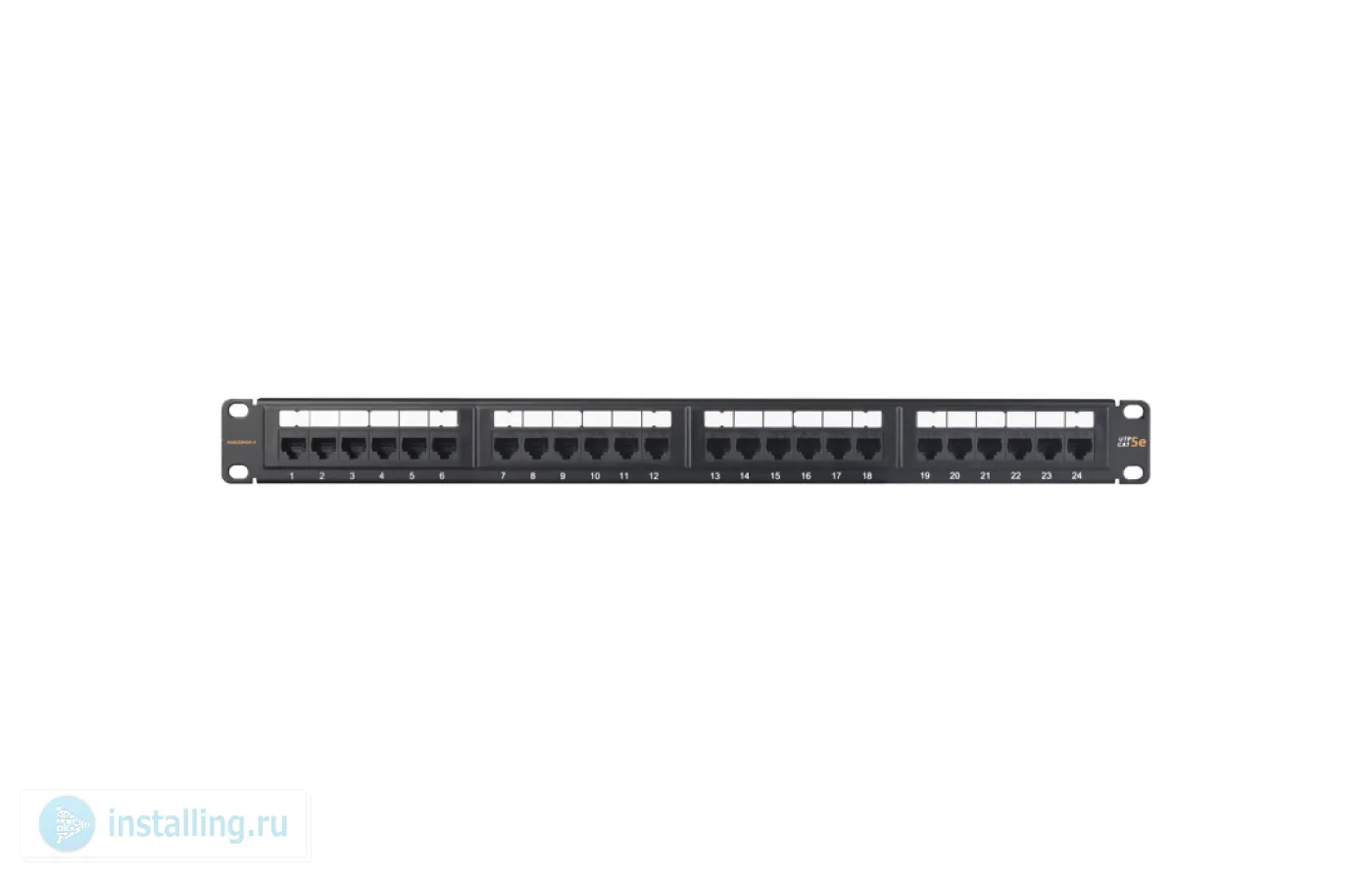 19, 1U, 24 порта, Кат.5e Класс D , 100 МГц, RJ45/8P8C, 110/KRONE, T568A/B, неэкранированная, с органайзером, черная