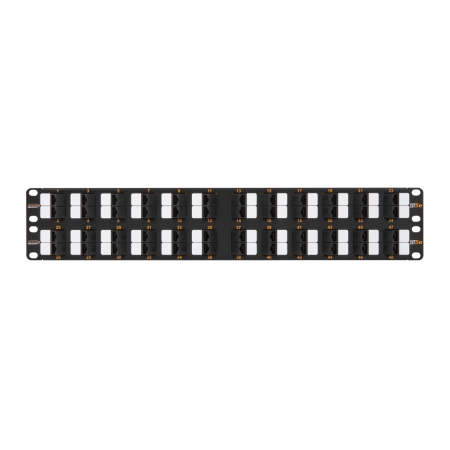 Коммутационная панель NIKOMAX 19, 2U, 48 угловых портов, Кат.5e Класс D, 100МГц, RJ45/8P8C, 110/KRONE, T568A/B, неэкранированная, с органайзером, черная.