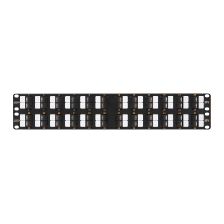 Коммутационная панель NIKOMAX 19, 2U, 48 угловых портов, Кат.6 Класс E, 250МГц, RJ45/8P8C, 110/KRONE, T568A/B, неэкранированная, с органайзером, черная.