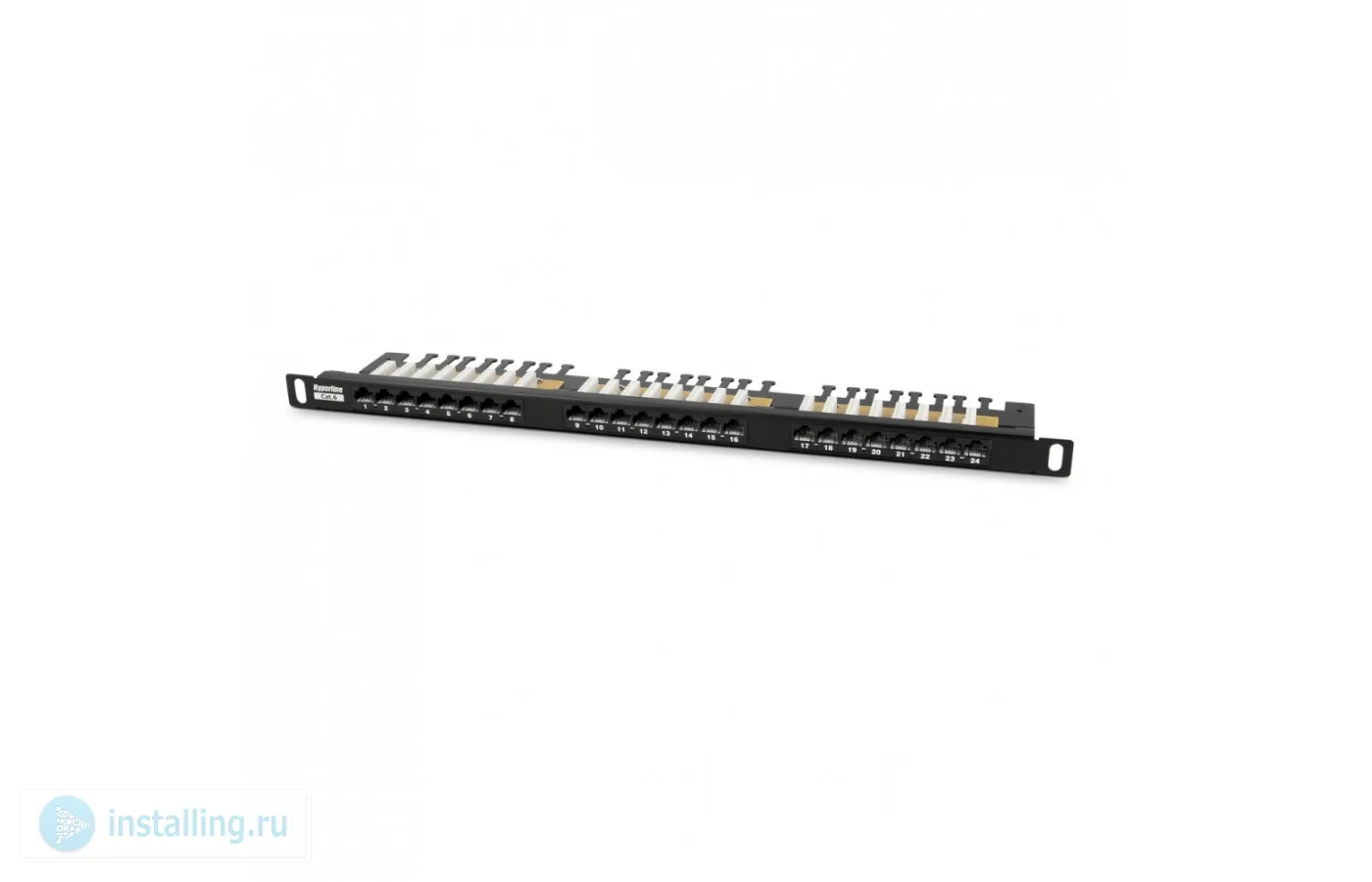 Hyperline Патч-панель высокой плотности 19", 0.5U, 24 порта RJ-45, категория 6, Dual IDC. Гарантия: -. Страна происхождения: Тайвань (Китай).