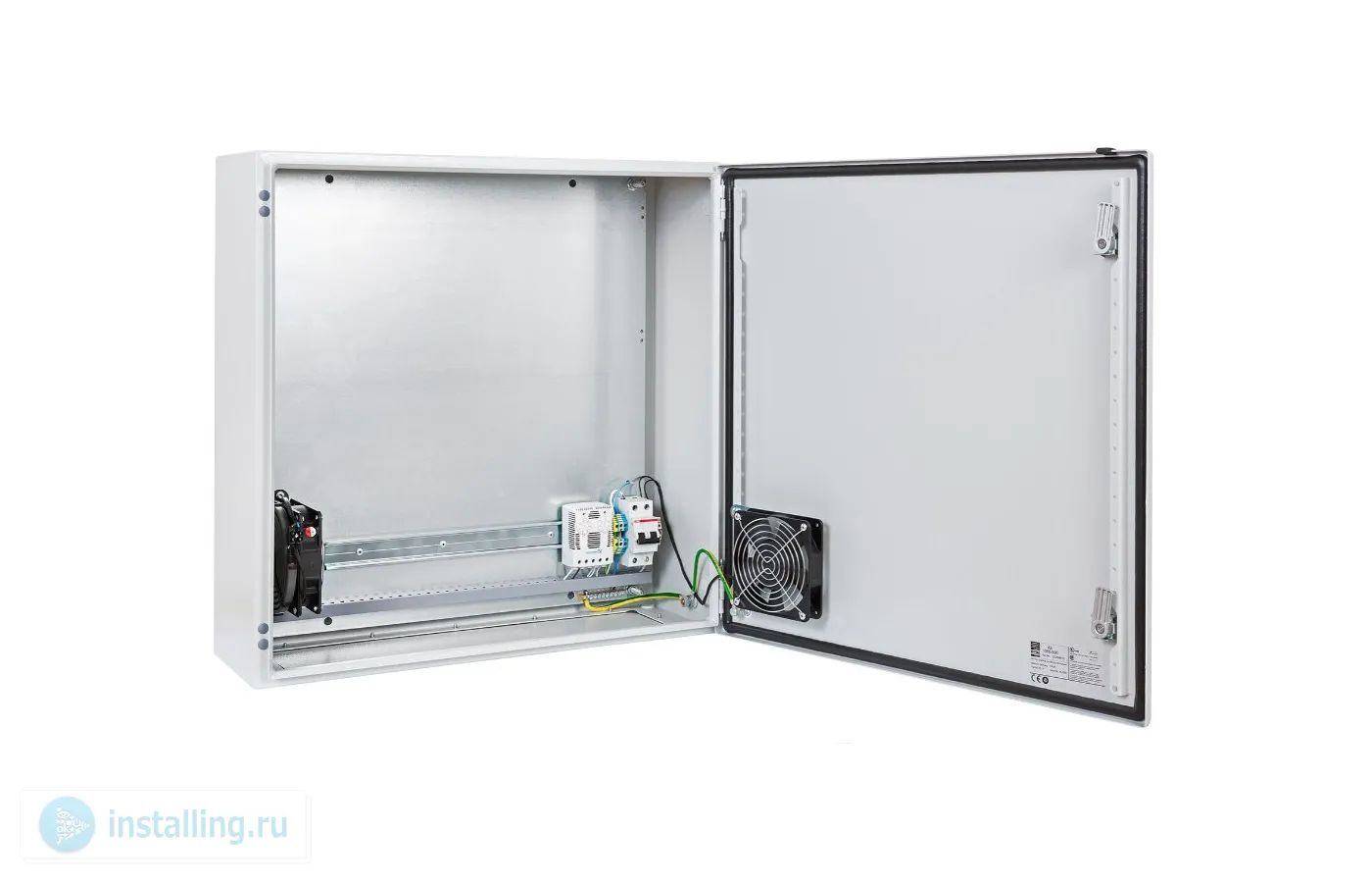 Всепогодный из листовой стали с порошковым покрытием, с монтажной панелью с DIN-рейками для клиентского оборудования, комплект [1,2] с вентилятором и нагревателем ; U-пит.100...240В, P-потр.100 Вт; IP66, t-раб.-40...+60°С, 600x600x210 мм. В комплекте гермовводы, проходные клеммы, двухполюсный автомат 10 А , шина заземления, вентилятор с термостатом, нагреватель с термостатом.