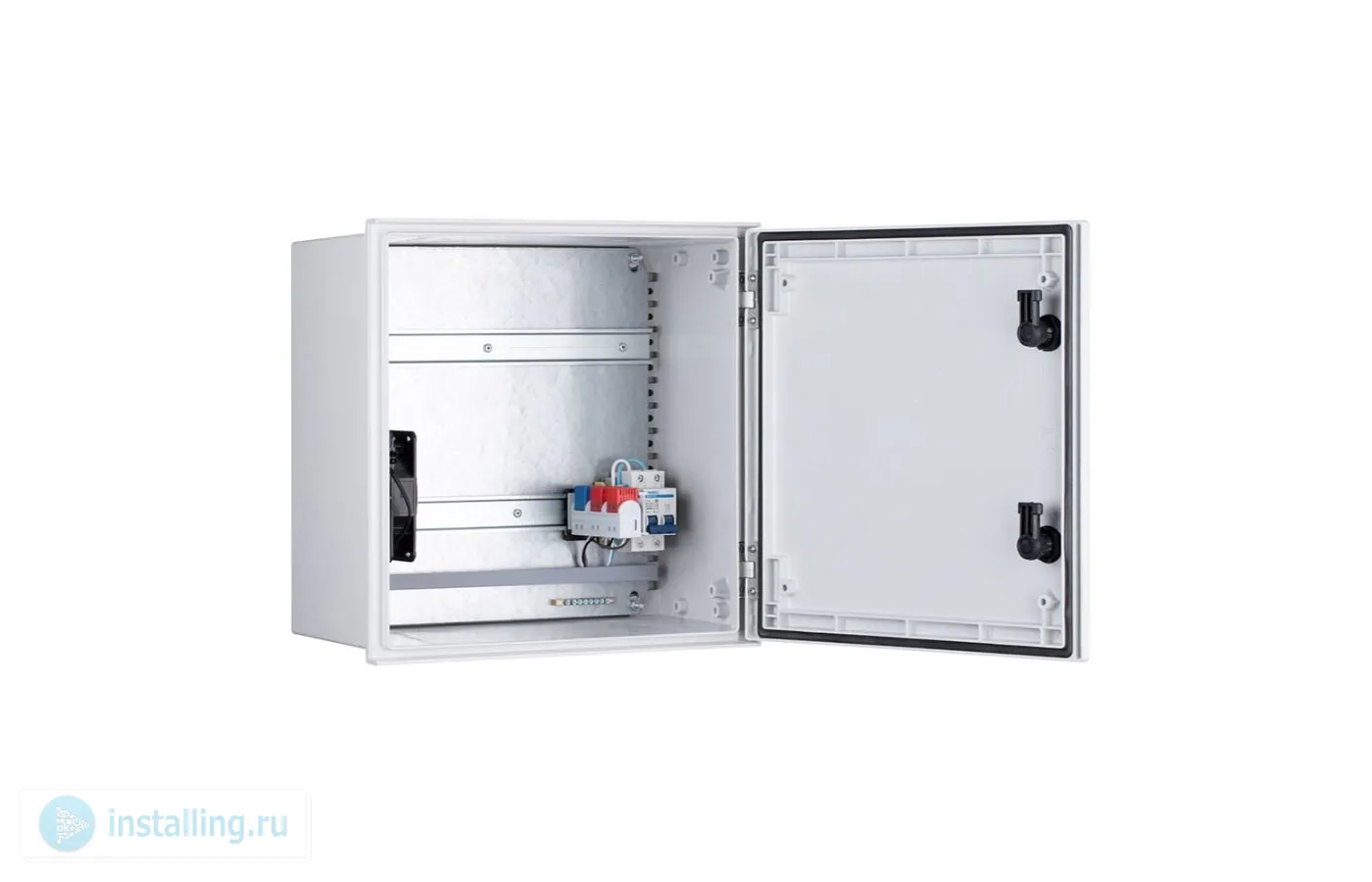 Всепогодный из армированного стекловолокном полиэстера, с монтажной панелью с DIN-рейками для клиентского оборудования, комплект [1,2] с вентилятором и нагревателем ; U-пит.100...240В, P-потр.100 Вт; IP66, t-раб.-40...+60°С, 300x400x200 мм. В комплекте гермовводы, проходные клеммы, двухполюсный автомат 10 А , шина заземления, вентилятор с термостатом, нагреватель с термостатом.