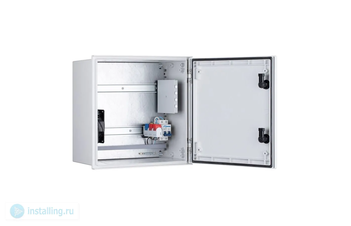Всепогодный из армированного стекловолокном полиэстера, с монтажной панелью с DIN-рейками для клиентского оборудования, комплект [1,2,3] с вентилятором, нагревателем и ODF ; U-пит.100...240В, P-потр.100 Вт; IP66, t-раб.-40...+60°С, 300x400x200 мм. В комплекте гермовводы, проходные клеммы, двухполюсный автомат 10 А , шина заземления, вентилятор с термостатом, нагреватель с термостатом, оптический кросс на 4 FC адаптера.