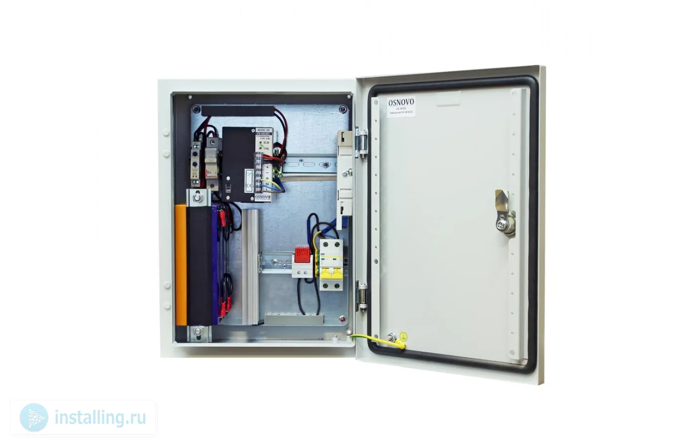 Уличная станция с оптическим кроссом + система обогрева + резервное питание: 2 разъема SC ложемент 8 КДЗС, пигтейл оптический одномодовый SC 0,9мм длинна 1,5м 183x113x22мм; шкаф металлический; IP66, встроенные DIN-рейки: верхняя - 80мм; набор гермовводов; автоматический выключатель 2P 220 В, 10A; обогреватель на DIN-рейке AC 230 В, 100Вт; вентилятор 120x120x25 мм AC 220В, 19Вт; -50…+50°С; реле контроля напряжения АКБ 10A, Аккумулятор 2,2 Ач 12 В х 4шт, размеры шкафа 300x400x210 мм. Поддержание температуры внутри шкафа от -7...+55°С при изменении наружной температуры от -50... +50°С.