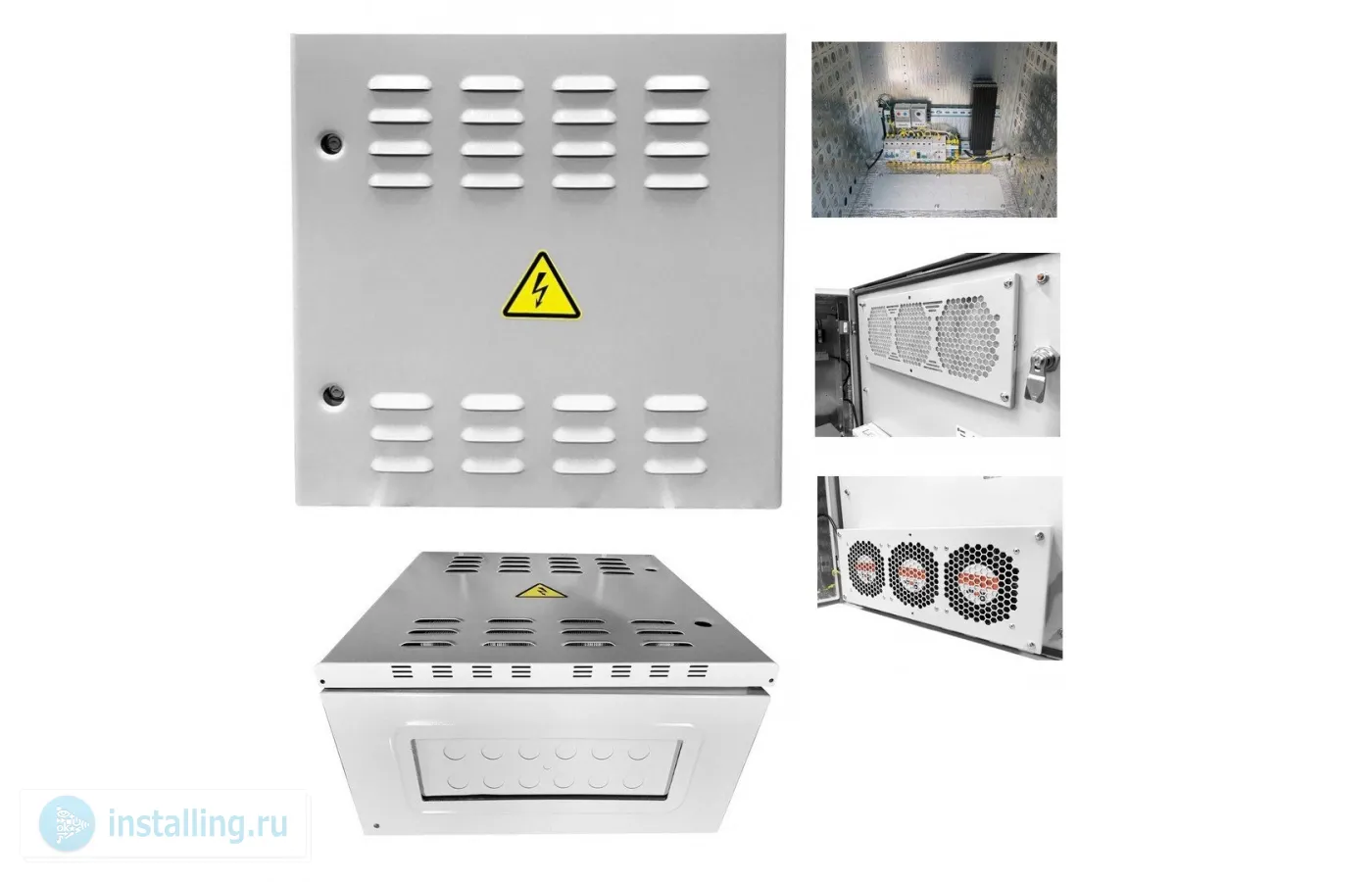 Всепогодный шкаф 19 навесной с системой контроля микроклиматаохлаждение+нагрев, 12U, 600x600x530 мм; полезная глубина 220 мм, материал сталь 2мм, передняя дверь вентилируемая, цвет серый, неразборный, допустимая нагрузка до 150 кг, вес 58 кг, IP54, -50…+45°C. Установленное оборудование: Вентилятор, Нагреватель полупроводниковый, Разрядник перенапряжения, Индикатор напряжения, Гигростат, Термостат, Выключатель дифференциальный защитный, Выключатель автоматический, Датчик открытия двери, Розетка на DIN-рейку, Шина заземления
