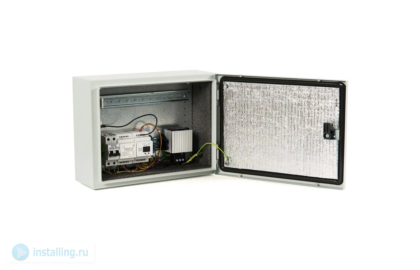 Уличный утепленный с автоматикой управления климатом; U-пит.170...250 В, I-нагр.5 А, P-нагрев.45 В; выход АВАРИЯ; IP65, t-раб. -65...+50 С, 300 х 400 х150 мм, 7.2 кг.