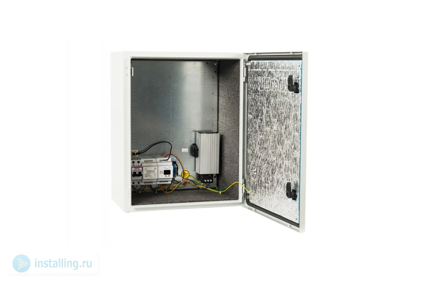 Уличный утепленный с автоматикой управления климатом; U-пит.170...250 В, I-нагр.5 А, P-нагрев.60 В; выход АВАРИЯ; IP 65, t-раб. -65...+50 С, 500 х 400 х 250 мм, 13.3 кг.