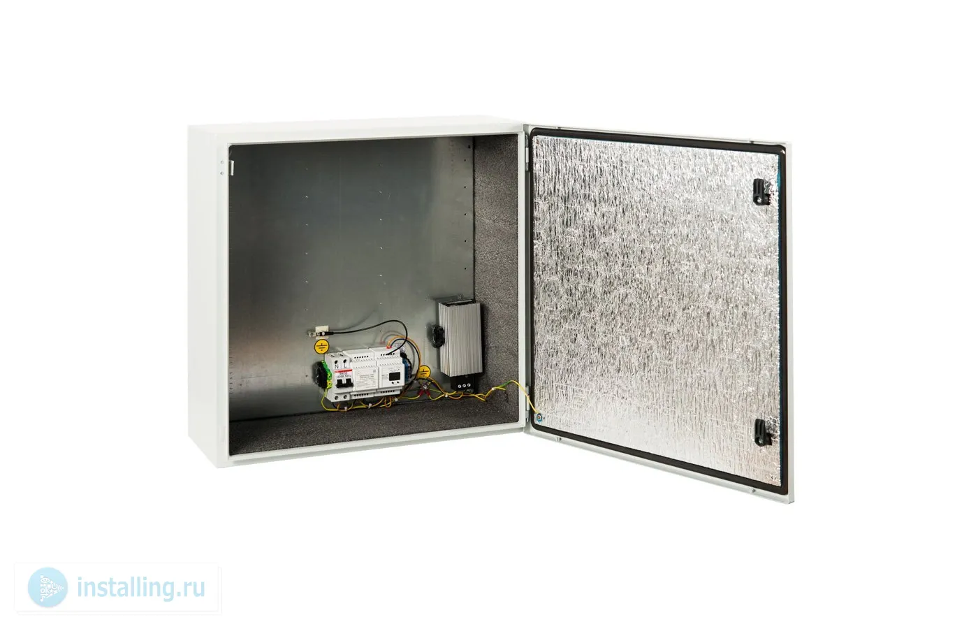 Уличный утепленный с автоматикой управления климатом; U-пит.170...250 В, I-нагр.5 А, P-нагрев.100 В; выход АВАРИЯ; IP65, t-раб. -65...+50 С, 600 х 600 х 250 мм, 21 кг.