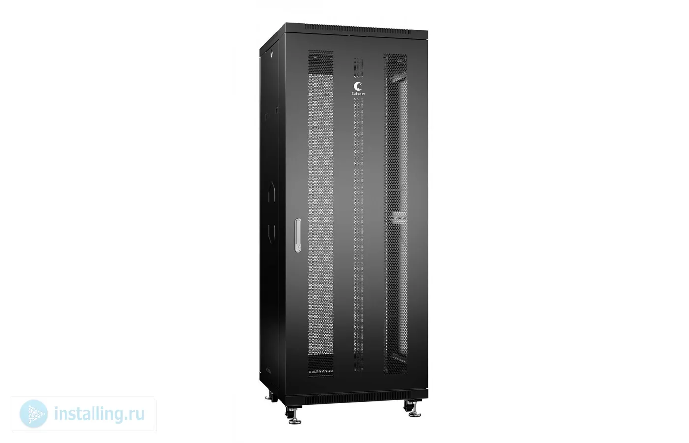 Шкаф монтажный телекоммуникационный 19 напольный для распределительного и серверного оборудования 32U 600x800x1610mm ШхГхВпередняя и задняя перфорированные двери, ручка с замком, цвет черный RAL 9004