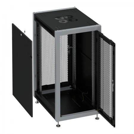 600x1000x1100мм ШхГхВ, передняя дверь перфорированная, задняя дверь перфорированная, поворотная ручка с замком, цвет черный RAL 9004/RAL 7000