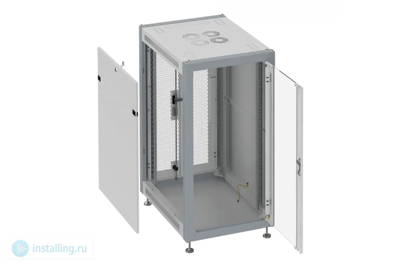 600x1000x2000 mm ШхГхВ, передняя дверь стеклянная, задняя дверь двухстворчатая перфорированная, поворотная ручка с замком, цвет серый RAL 7035. Разобранный.